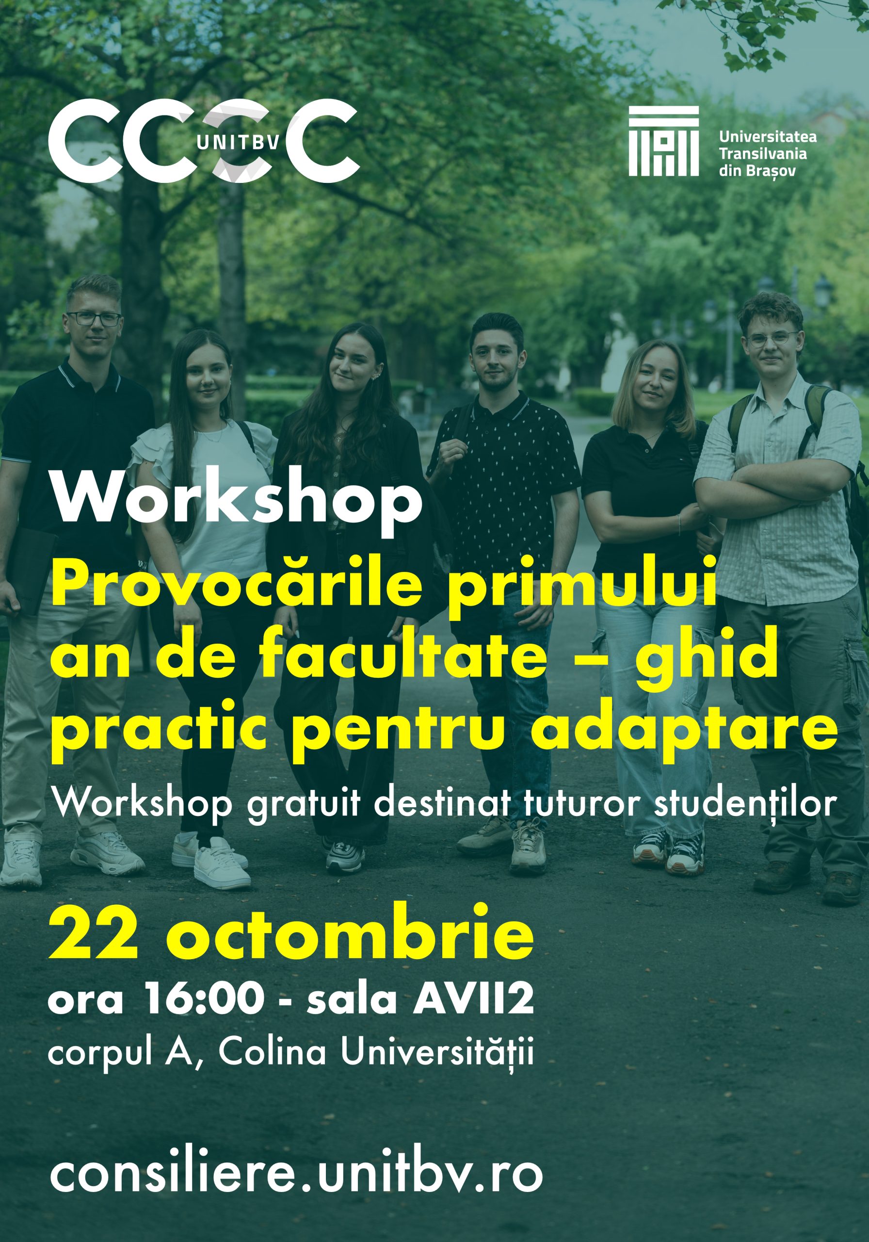 Hai la workshopul „Provocările primului an de facultate – ghid practic pentru adaptare”, organizat de CCOC UNITBV, ca să vorbim deschis despre toate acestea.